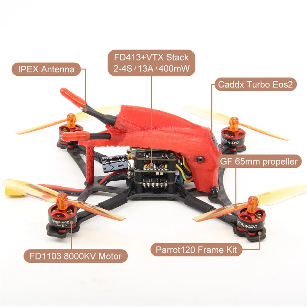 Discount HGLRC Toothpick Parrot120 Micro RC FPV Racing Drone BNF A8S V2 F411 2-4S Flight Control 13A 4in1 ES